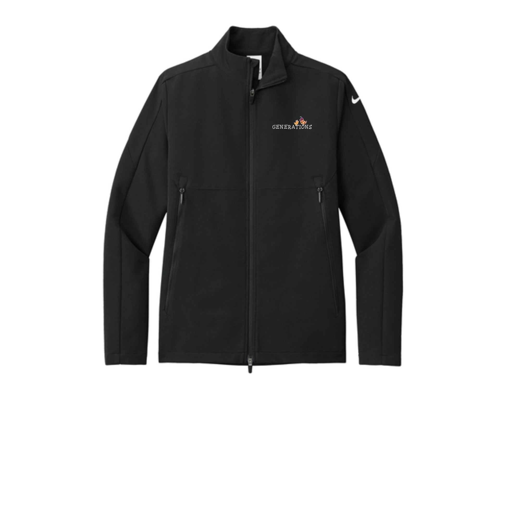 Take your outdoor workouts to the next level. This smooth, water-repellent soft shell has plenty of stretch and features a soft interior. It helps keep the elements out, while effectively managing moisture. The Generations logo is embroidered on the left chest.
